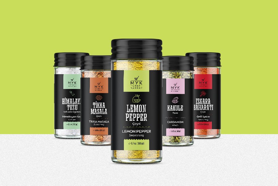 Şef Mehmet Yalçınkaya’nın markası MYK Chef Market için tasarladığım baharat etiketleri.